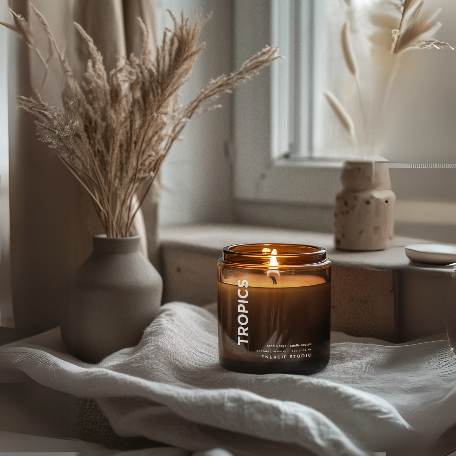 Scent Description: Sand & Sage: Discover the captivating blend of Sand and Sage with our boho-inspired candle. Featuring top notes of soothing chamomile, sweet pear, and aromatic sage, Transport to a majestic desert landscape.